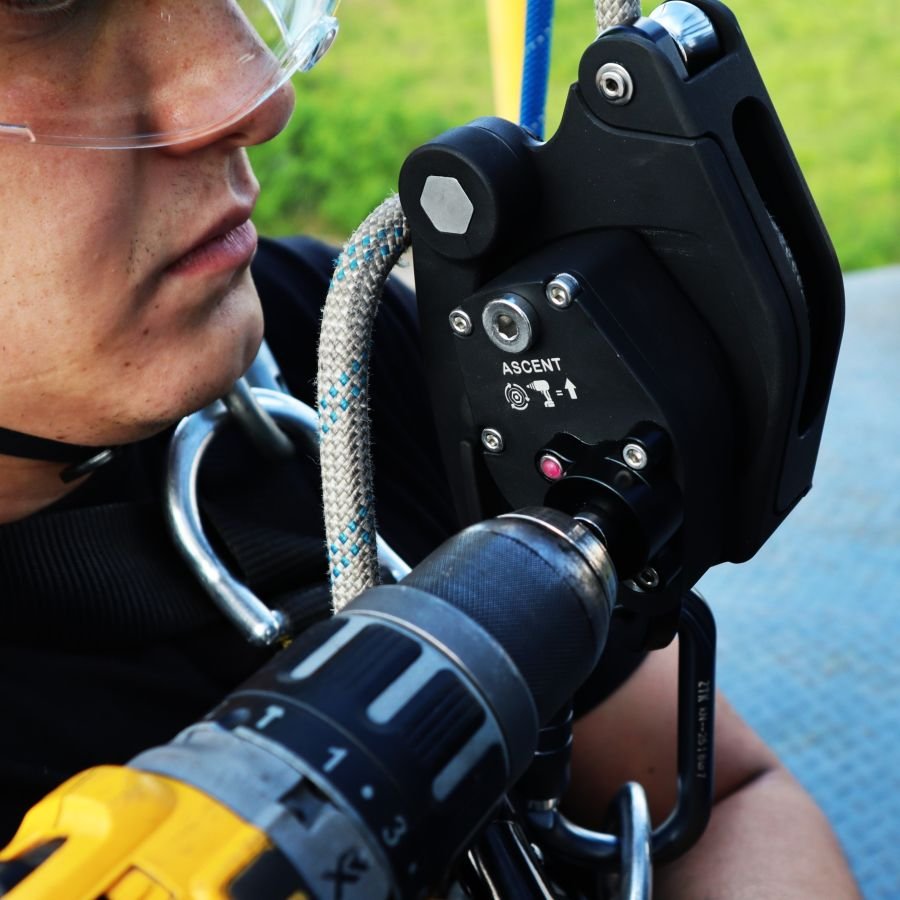 O sistema TASK HYBRID é ascensor movido a furadeira. O equipamento é fácil de usar, adequado para levantar e baixar cargas e pessoas. É o futuro das operações verticais (trabalhos e resgates)!