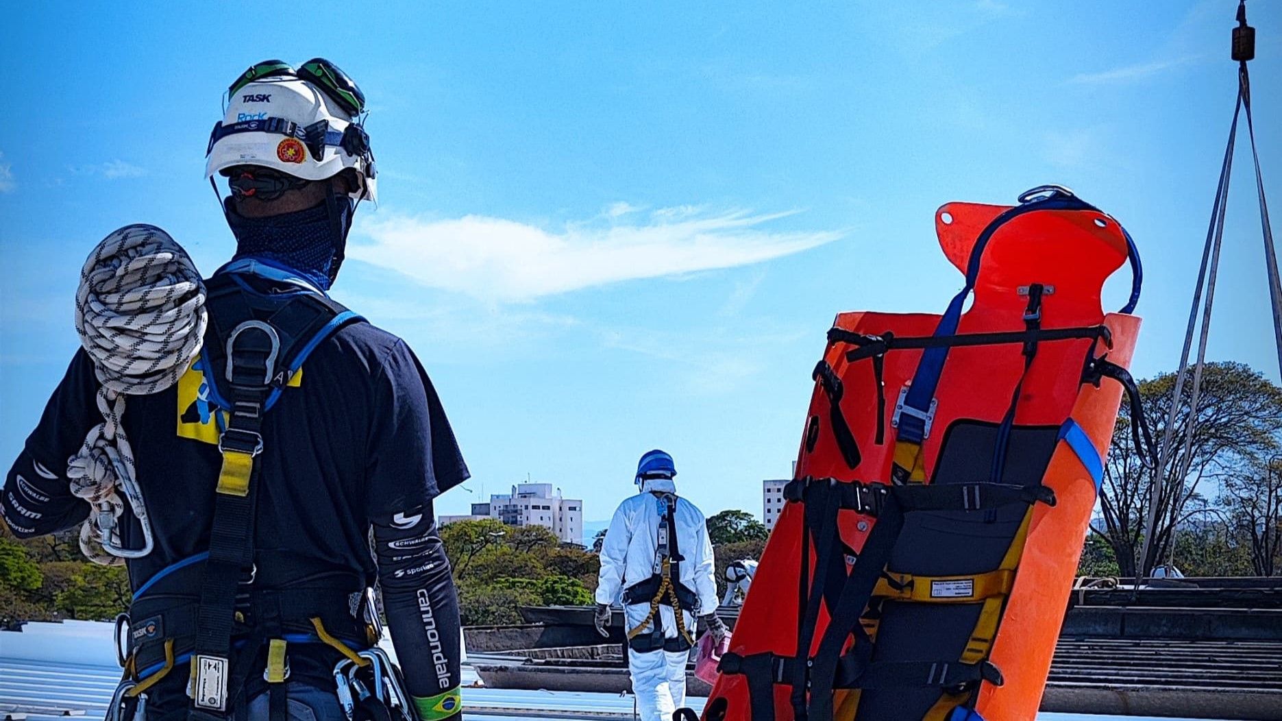 Serviço de acompanhamento técnico em atividades em altura, realizado por resgatistas experientes com formação N3C pela TASK, garantindo um alto padrão de segurança durante toda a execução do serviço.