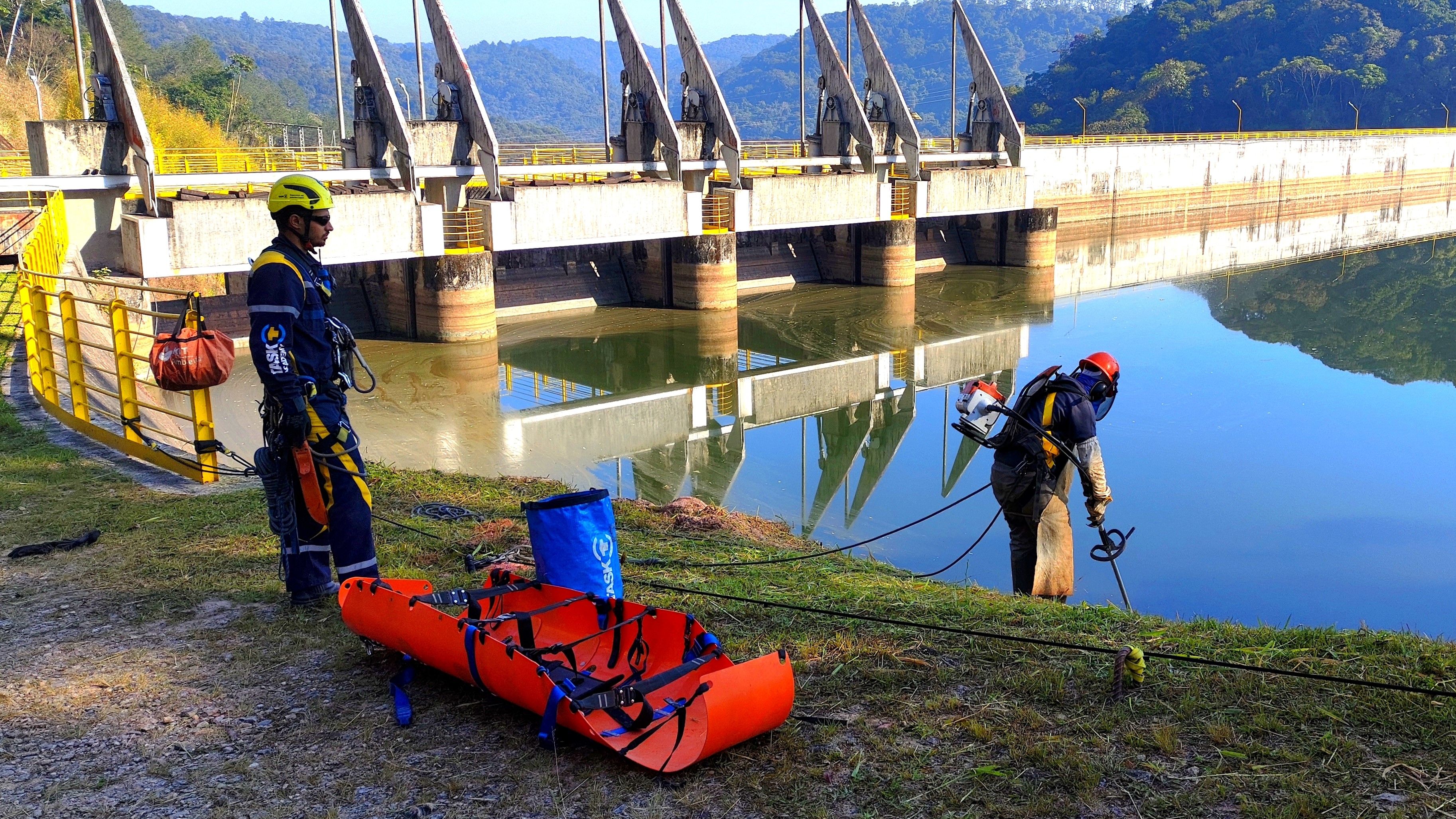 Equipe de engenheiros civis e instaladores e resgatistas certificados pela TASK